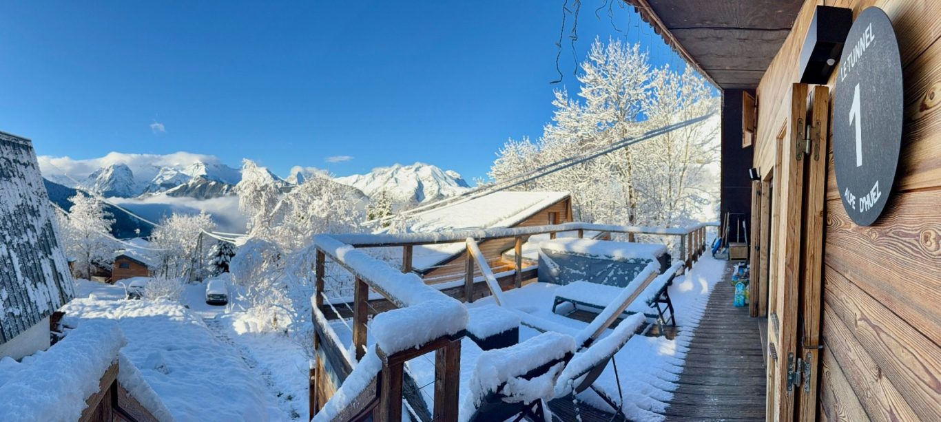 * Une terrasse avec vue dégagée sur le massif des Ecrins