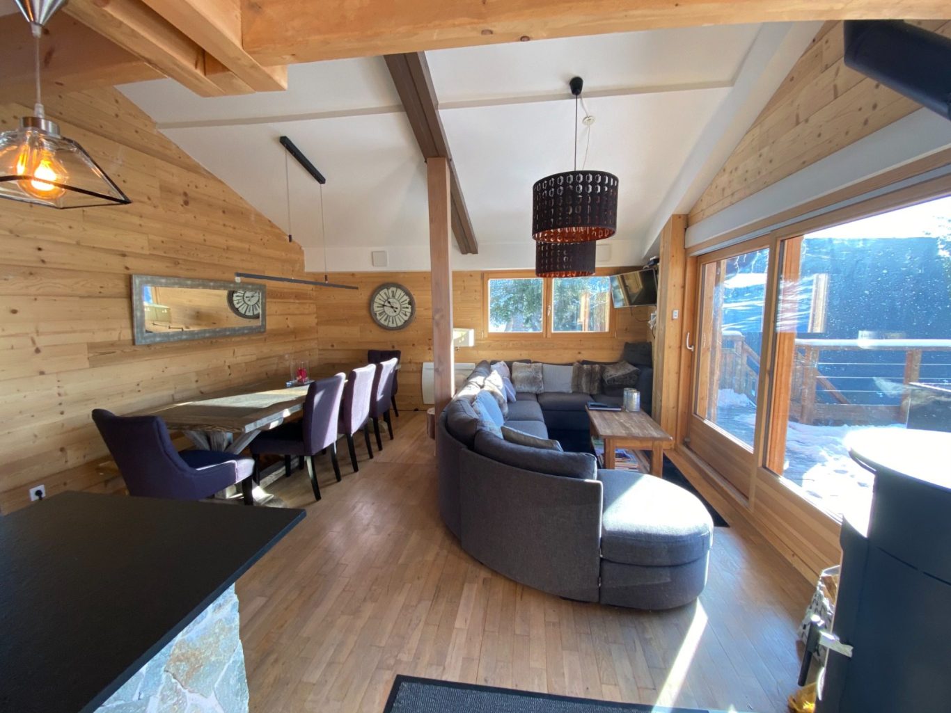 * Un coin salon avec un grand canapé orienté vers la terrasse plein sud